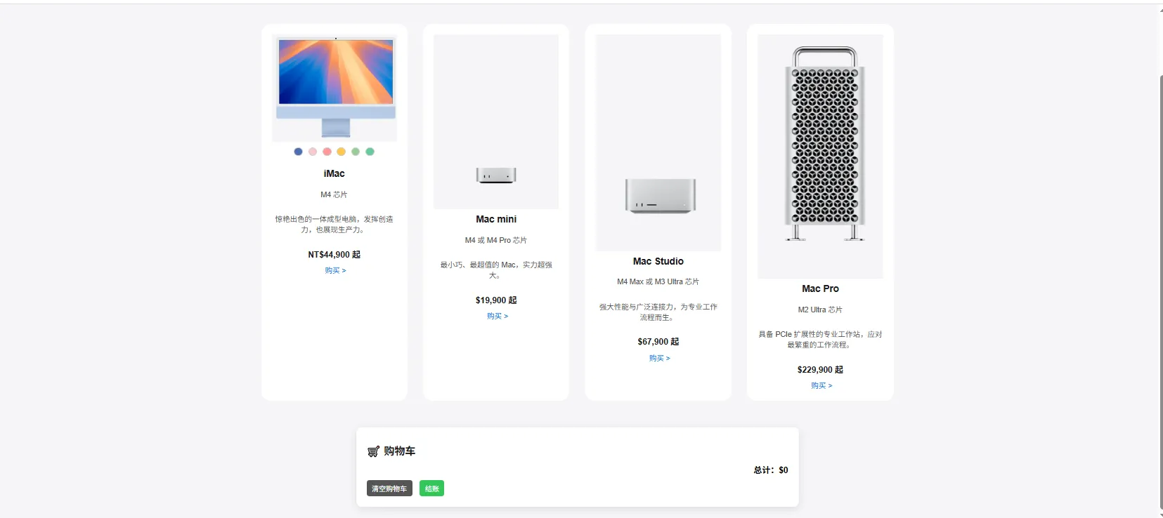 通过点击购买可以将物品添加到购物车中,点击结账会提示余额不足