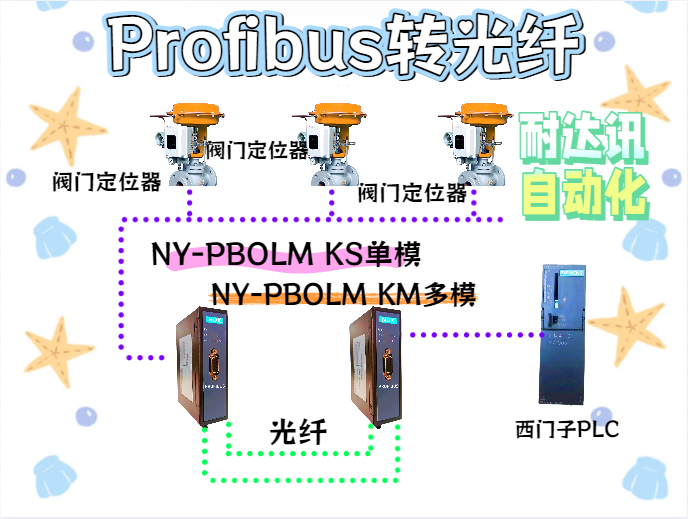 实现PROFIBUS与光纤的连接,核心在于使用耐达讯自动化PROFIBUS光纤模块。该设备将PROFIBUS的RS-485或MBP-IS电信号转换为光信号,通过光纤传输后,在远端再转换回电信号。此过程对上层协议完全透明,阀门定位器等设备无需任何改动即可接入。