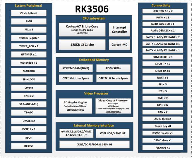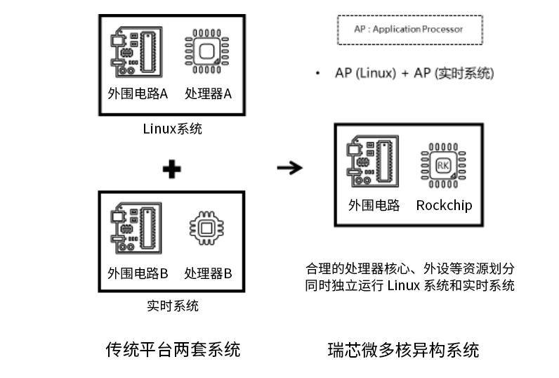 RK3506J依托AMP架构,各核心可独立运行不同操作系统或任务,实现资源合理划分与精准分配。在复杂外设协同工作场景下,AMP 架构能将两套系统合二为一,一套板卡即可同时独立运行 Linux 系统和实时系统。