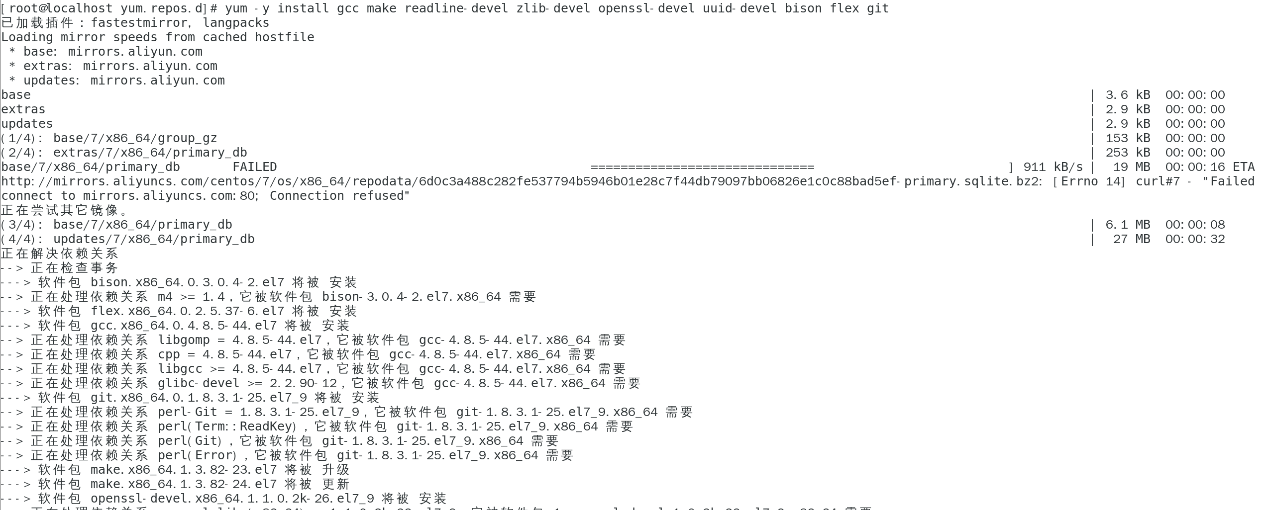 yum -y install gcc make readline-devel zlib-devel openssl-devel uuid-devel bison flex git