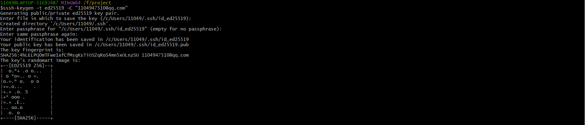 ssh-keygen -t ed25519 -C "我的GitHub邮箱"连续回车确认后,生成 id_ed25519 和 id_ed25519.pub 文件。