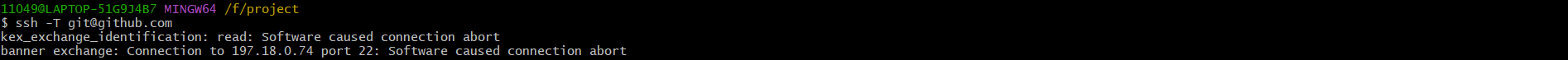ssh -T git@github.combanner exchange: Connection to 197.x.x.x port 22: Software caused connection abort这表明当前网络环境屏蔽了 22 端口。
