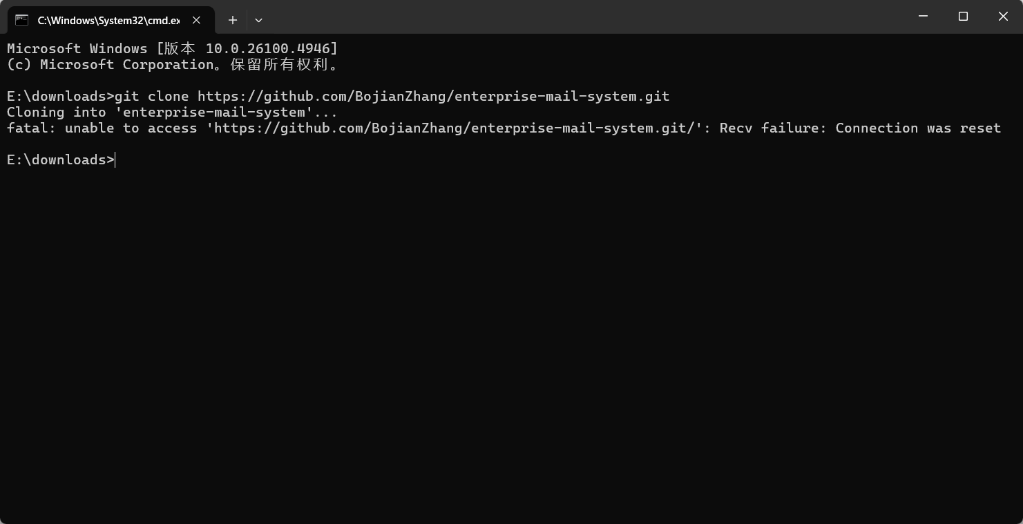 fatal: unable to access 'https://github.com/BojianZhang/enterprise-mail-system.git/': Recv failure: Connection was aborted