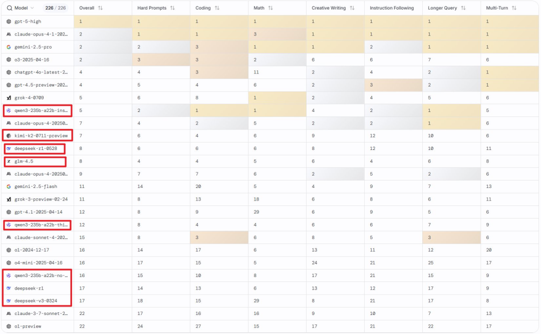 图 22:LM Arena 排行榜当前视图(截至 2025 年 8 月 12 日)