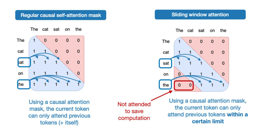 图 10:常规注意力(左)与滑动窗口注意力(右)的比较。