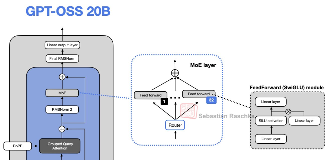 如果你对 LLM 架构有所了解,可能乍一看会觉得这两个 gpt-oss 并没有什么新颖或不寻常之处。