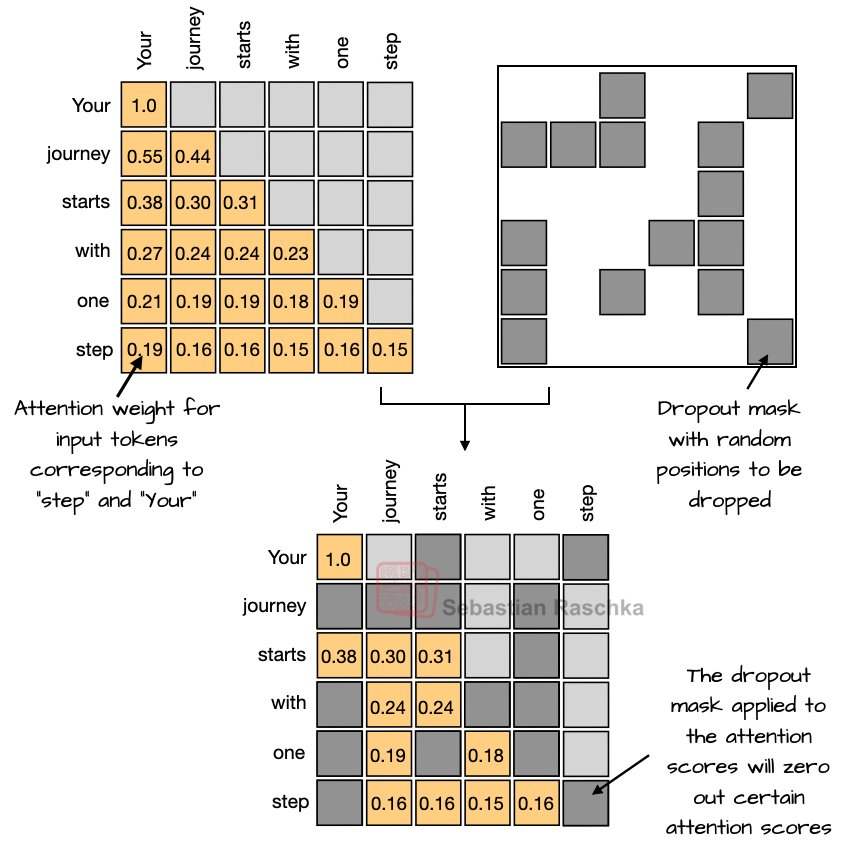 图 3:将 Dropout 应用于注意力分数矩阵的示意图