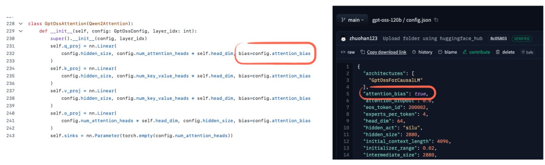 图 18:gpt-oss 模型在注意力层中使用了偏差单元。