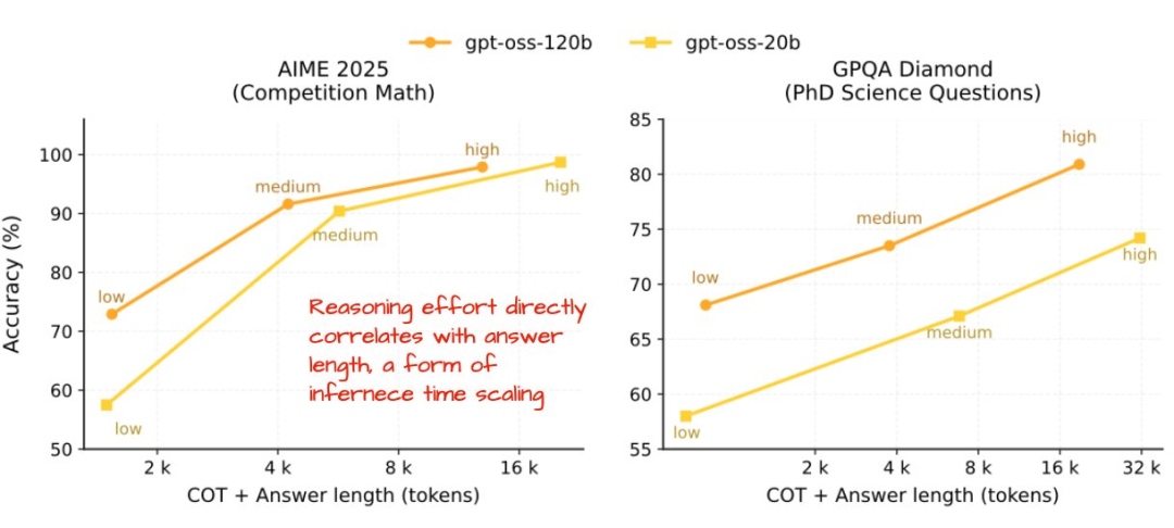 图 21:不同推理工作量下 gpt-oss 模型的响应长度和质量
