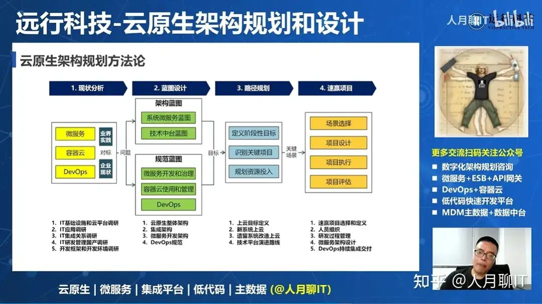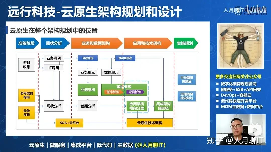 对于企业架构规划思想,我之前已有大量文章和视频进行阐述。简而言之,该规划可分为准备阶段、现状分析、业务与数据架构设计、应用与技术架构设计,最终形成实施路线规划。