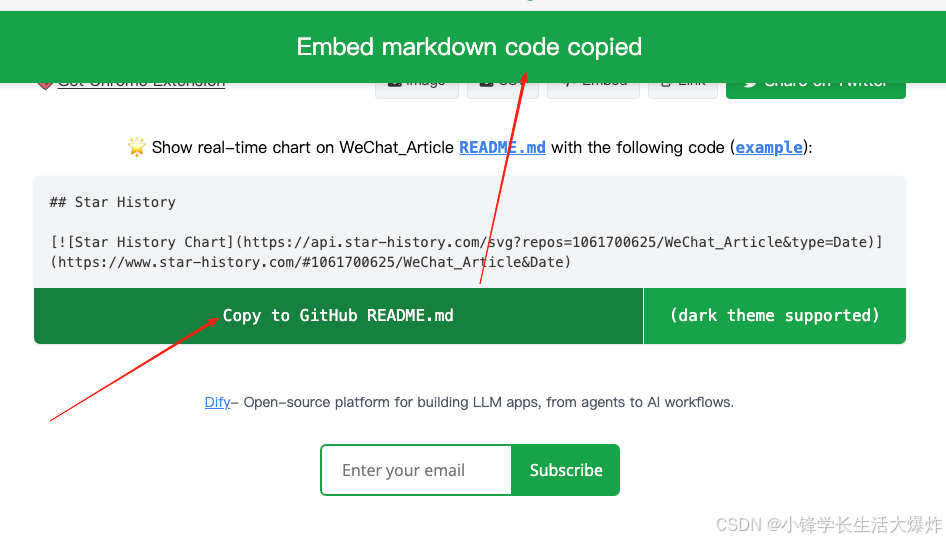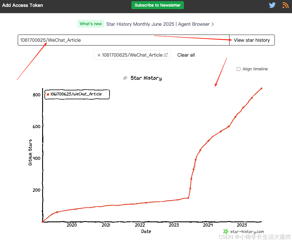 3、将项目名称复制到star-history,点击“View star history”按钮,即可生成曲线图。