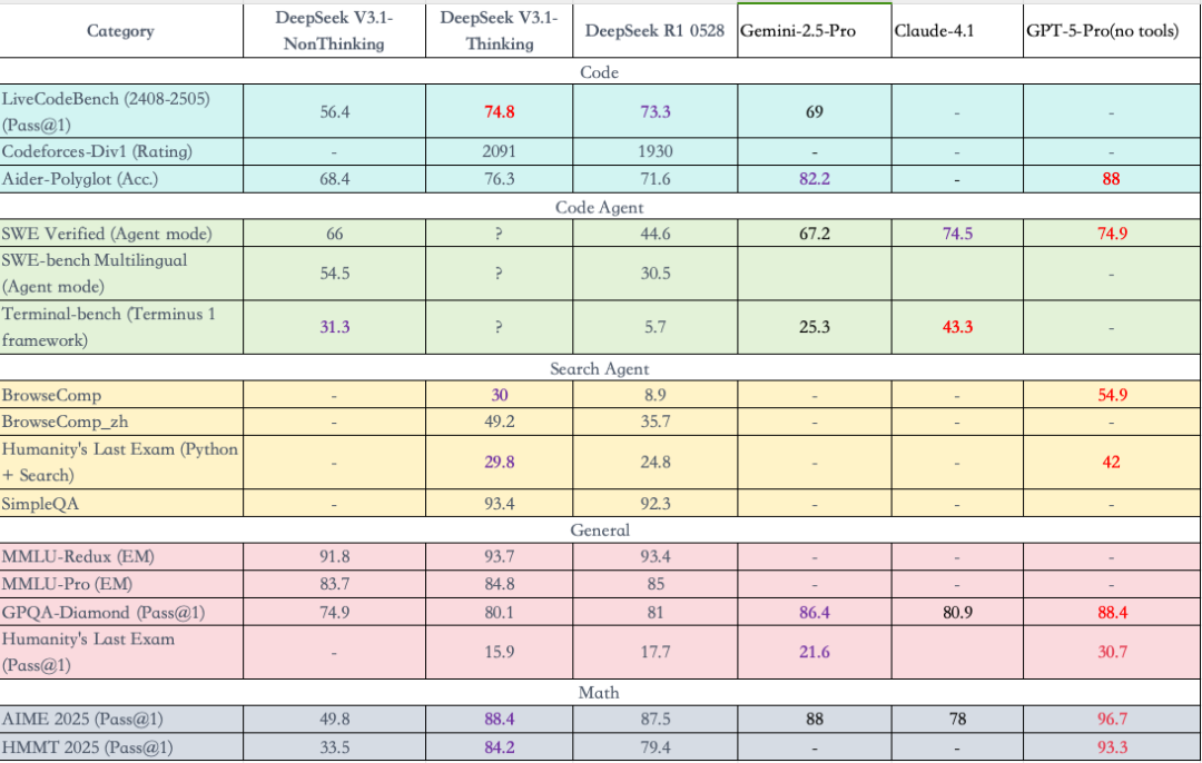 DeepSeekV3.1静态榜单对比,谷歌Gemini:让你模仿,没让你超越啊!