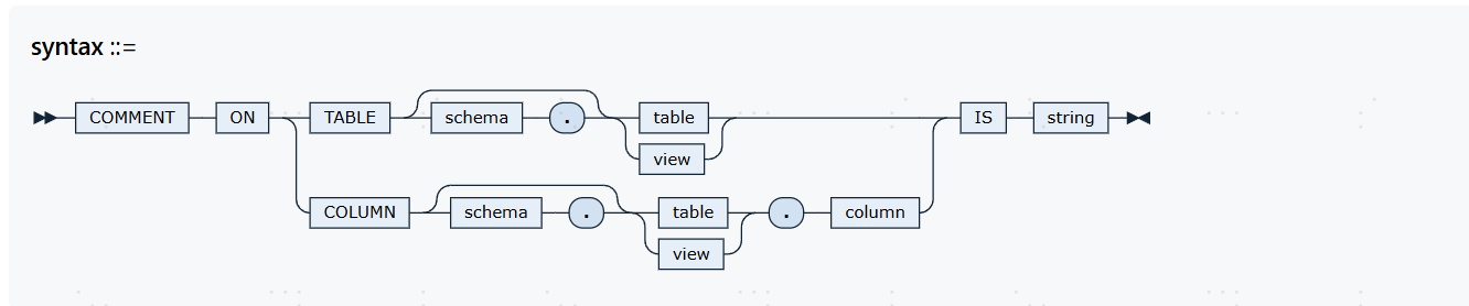 该语句用于指定要添加注释信息的表|视图名称。