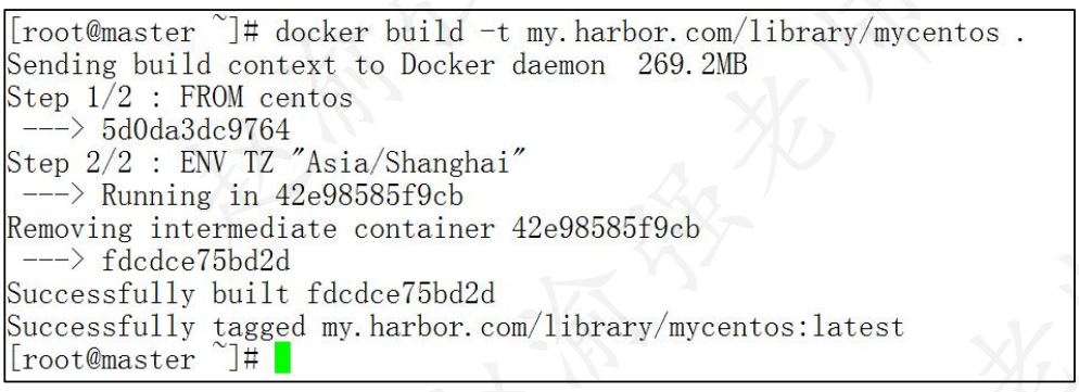 (7)使用“docker build”命令编译Dockerfile文件生成镜像,如下图所示。