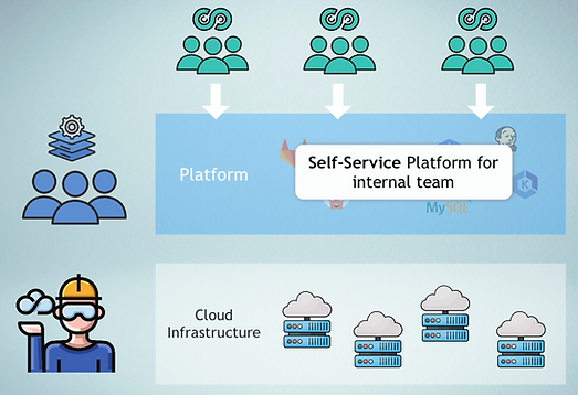 因此,那些已经配置好并保障了安全的服务,并提供了一个易于交互和访问的接口来供应用程序使用,这被称为“平台”。由于开发者只需登录即可自助服务,而无需向平台团队请求资源,所以对于内部开发团队来说,这就是所谓的“平台即服务”,也称为“内部开发者平台”或“IDP”。