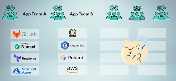 但是等等,我们不是把开发(Dev)和运维(Ops)合并在一起,就是为了避免那些职责分离的孤岛团队吗?🤔 因为现在听起来好像有一个独立的平台团队来决定整个公司要使用哪些工具,并根据他们的判断来设置所有这些工具,然后给应用团队提供这些工具的访问权限。这听起来有点像那种传统的做法,而我们绝对不想回到那种方式!