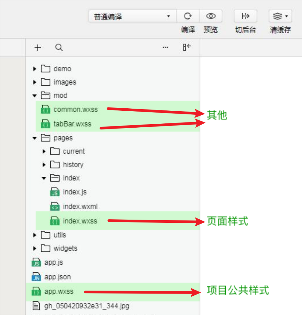 本章节会对这4种文件类型做简单的介绍,建议大家读写并行,从而对小程序的代码组成有一个大致的理解。