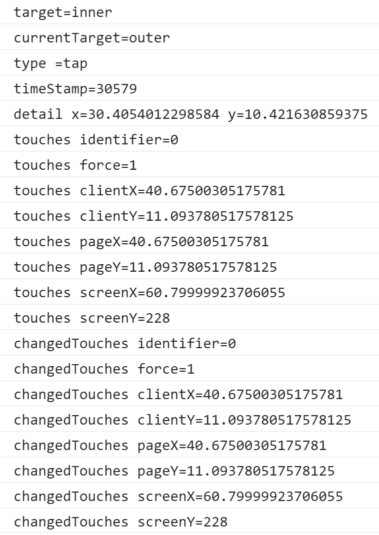 console.log("changedTouches clientX=" + evt.changedTouches[0].clientX);