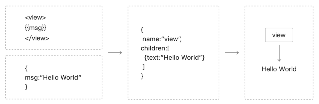 WXML可以先转成JS对象,然后再渲染出真正的Dom树,转换的过程如图2-xx所示。