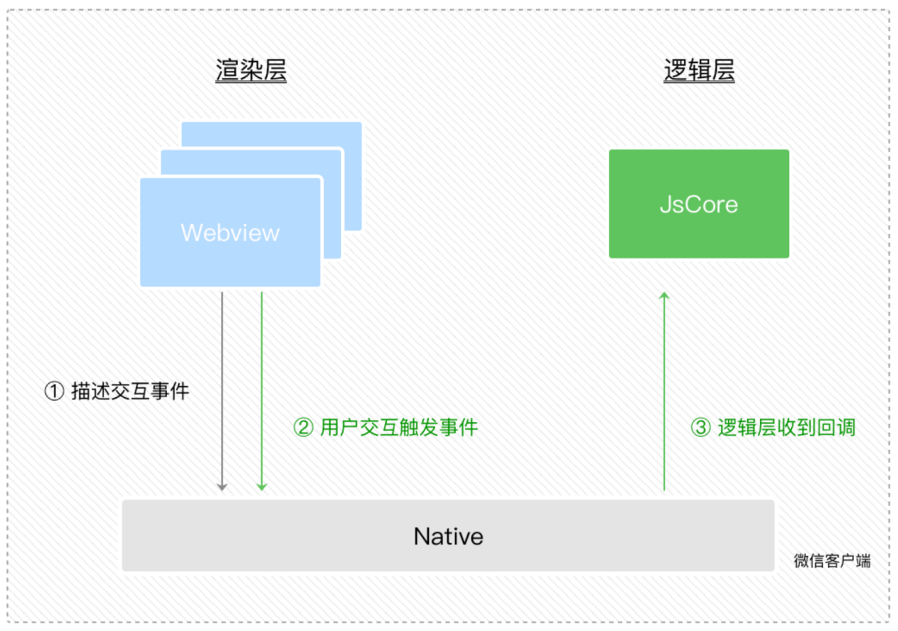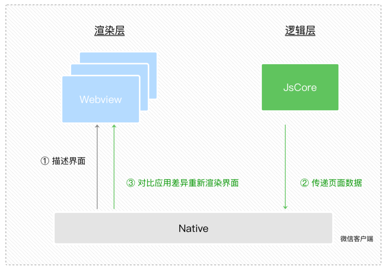 (1)渲染层的界面使用WebView线程进行渲染。一个小程序存在多个界面,所以渲染层存在多个WebView线程