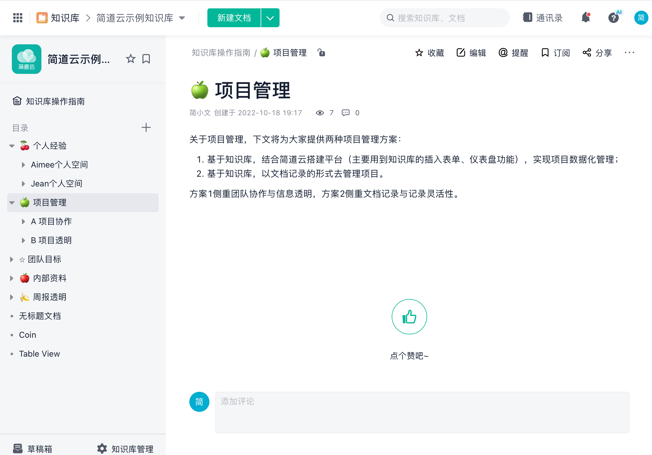 客户服务 :自动分类客户咨询类型并分配至对应部门。供应链优化 :基于销售数据预测库存需求,自动生成补货计划。风险管理 :实时监测异常交易行为,自动冻结可疑账户。5. 知识库:集中管理企业知识资产 功能描述 : 知识库功能允许企业将文档、模板、流程指南等集中存储,并支持权限管理、版本控制和搜索功能。例如: