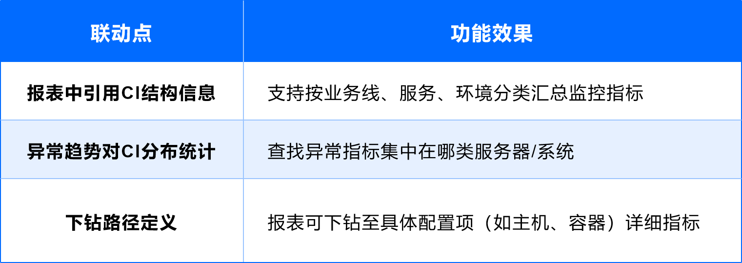 目标:将监控数据与配置数据绑定,实现更清晰的“服务→资源→组件”映射分析。