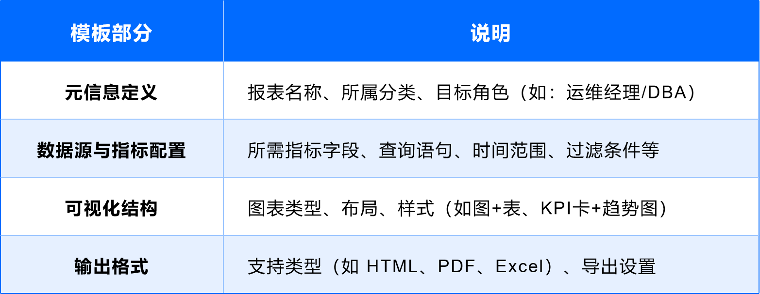 在监控体系中,报表的价值不仅在于“设计出来”,更在于被高效生成、及时分发、持续使用。本章将从模板管理、任务调度、分发策略和审计机制四个方面,构建一个标准化、可扩展、可审计的报表发布与使用流程。
