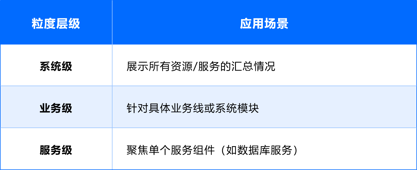 多维粒度支持用户从“全景视角”切换至“微观剖析”,适配管理层、中层与技术角色的不同需求。