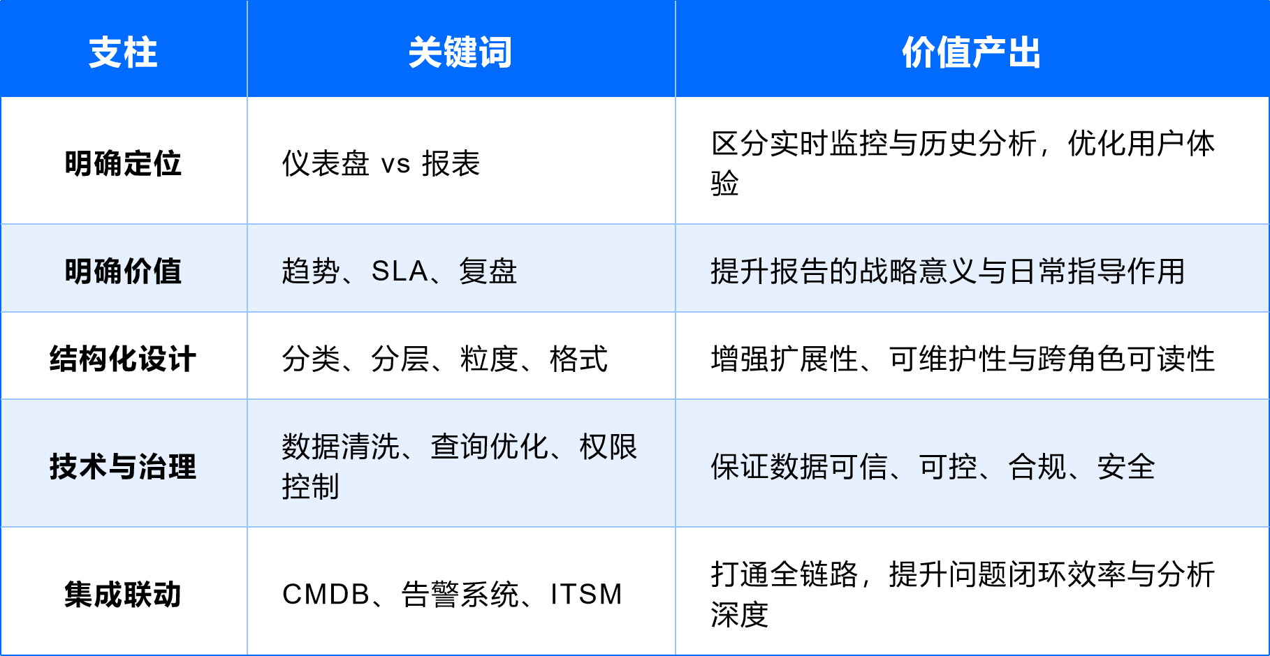 通过前几章内容,我们可以总结出一个成熟、可持续的报表体系需具备以下五个关键支柱: