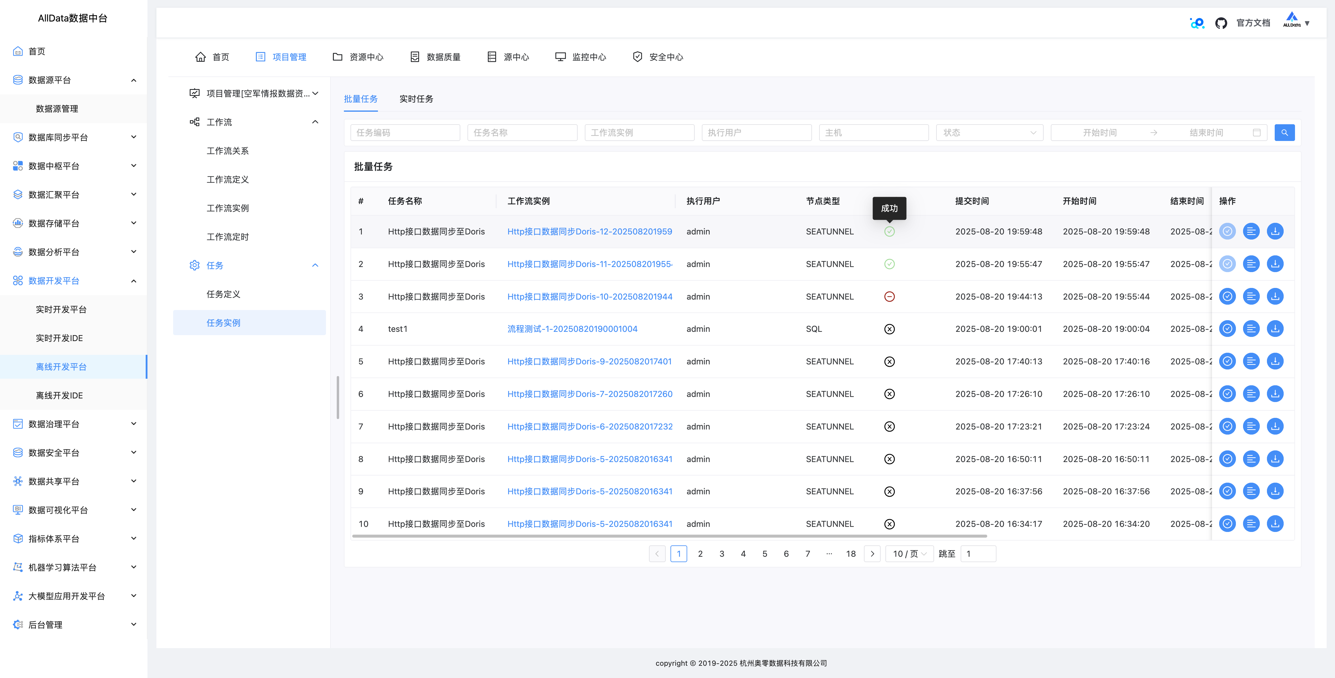 支持多租户模式,不同租户可以在同一个平台上独立进行任务开发和管理,实现资源隔离和权限控制,满足企业内不同部门或团队的使用需求。