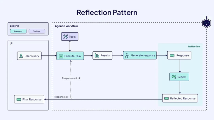 - 反思模式(Reflection Pattern):智能体迭代评估输出质量,通过自我反馈改进决策。例如,编码智能体运行代码后,根据错误信息调整并重试。反思整合短期和长期记忆,实现持续优化。