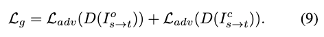 为提高生成图像的视觉质量和真实感,采用对抗损失: