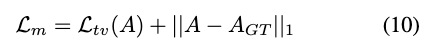 其中 表示预测的掩码, 表示可用的真实掩码。总变分损失 计算水平和垂直方向上相邻像素间绝对差值的总和,以促进预测掩码的空间平滑性。