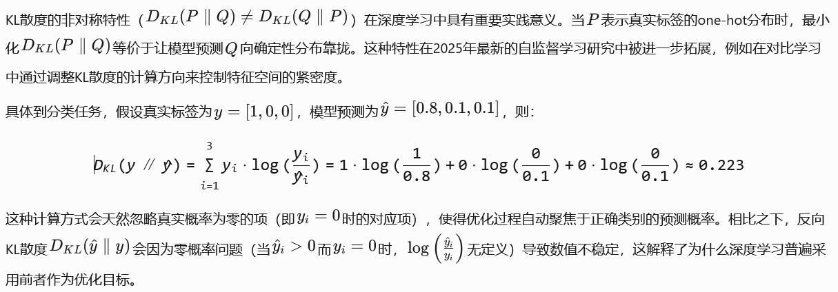 其中y_k是真实标签的指示函数,p_k是softmax输出的预测概率。这个形式实际上是对KL散度的离散化实现,具有三个关键特性: