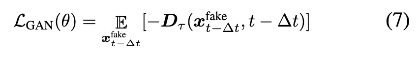 本文不使用预定义的伪造分布与真实分布之间的散度,而是通过对抗判别器采用一种隐式的、数据驱动的差异度量。具体来说,我们的判别器由一个与教师模型相同初始化的冻结潜在扩散模型和多个添加在不同UNet[57]或DiT[49]块上的可训练头部组成。给定从少步生成器输出扩散得到的噪声样本,分数估计器不再像公式(5)中那样求解关于终点和的PF-ODE。
