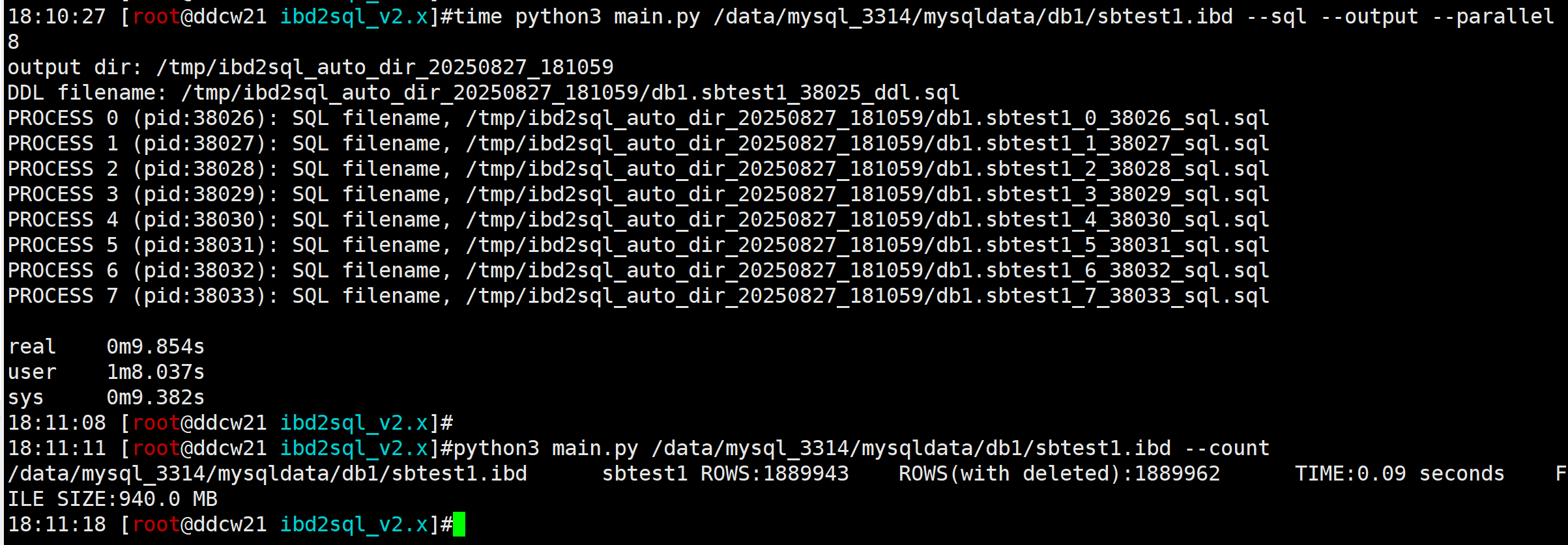 ibd2sql 2.x版本已经写好了(都TM写了1年了...),进入测试阶段了. 主要是优化了性能,扩展了支持范围,也支持解析多个文件,也支持并发.