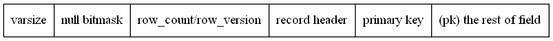null bitmask: 有些字段是没有非空约束的, 即可为空, 那么就需要使用1bit来记录其是否为空. 若为空,则varsize部分也不需要记录该字段了.