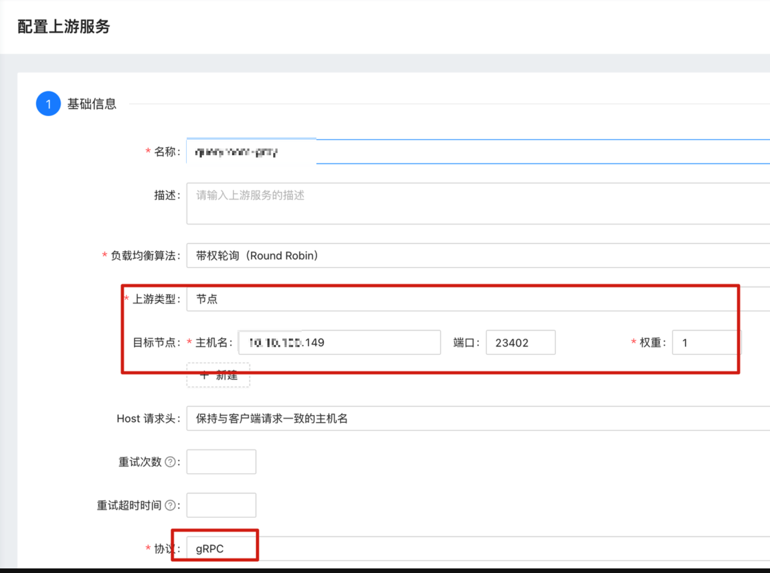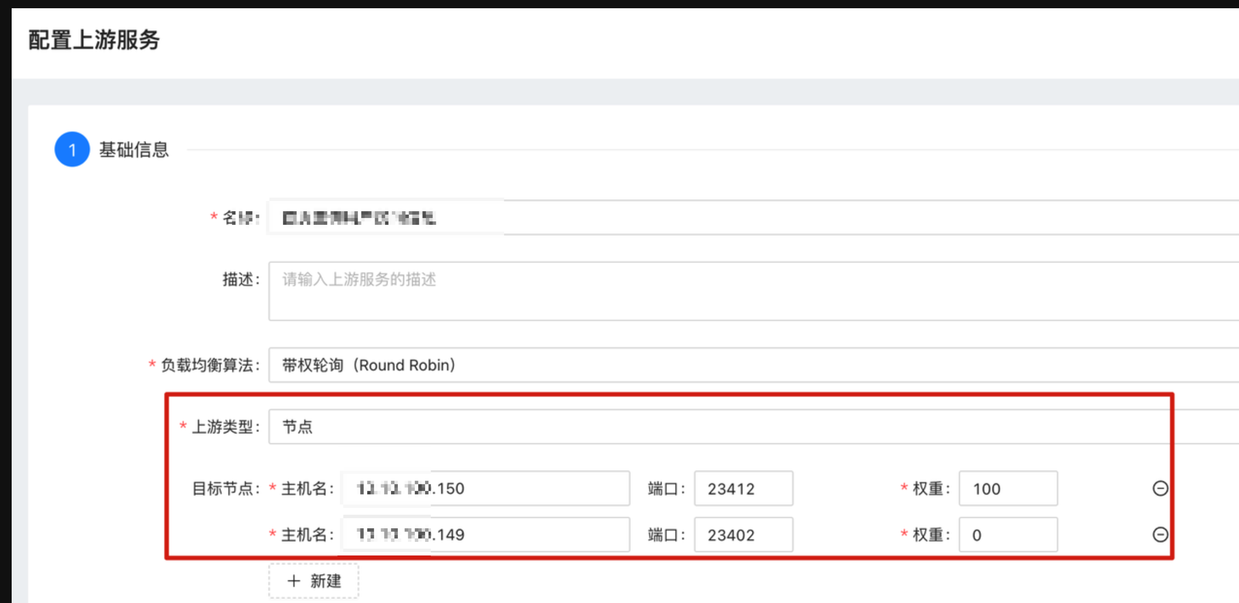 新建一个上游,节点信息填写灰度机器的IP信息。