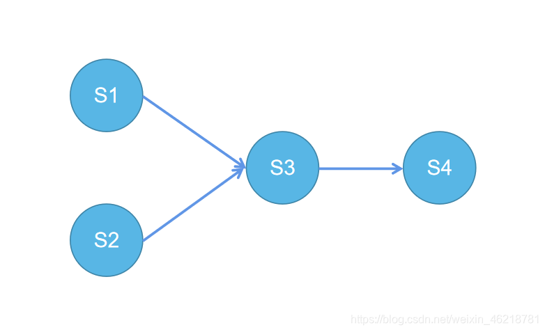 S2 → S3分析: S1与S2可以并发执行,因为它们互不依赖;但是S3必须在a(S1)、b(S2)被赋值后才能执行,S4必须在c(S3)之后才能执行。 画图: 具有如图所示的前趋关系: