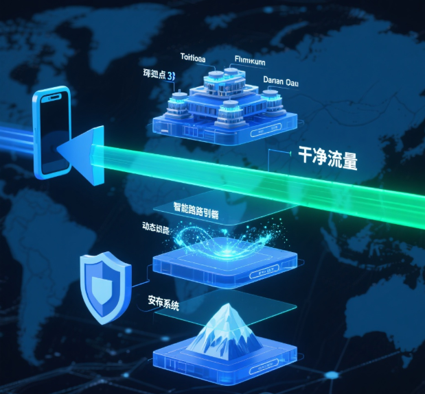 示意图逻辑:用户请求 → 边缘节点智能路由 → 源站内容缓存/安全过滤 → 返回“干净流量”至用户