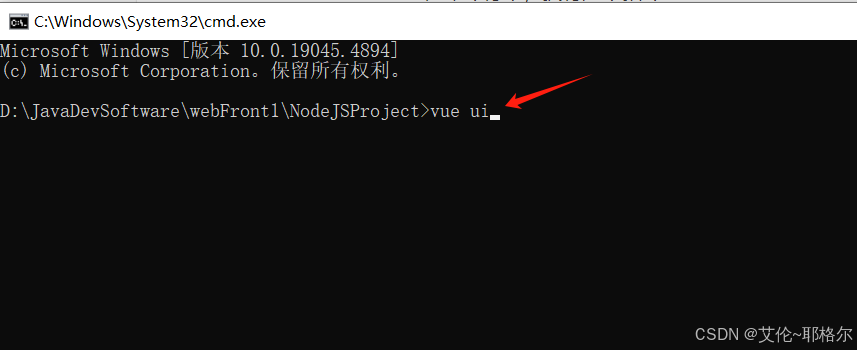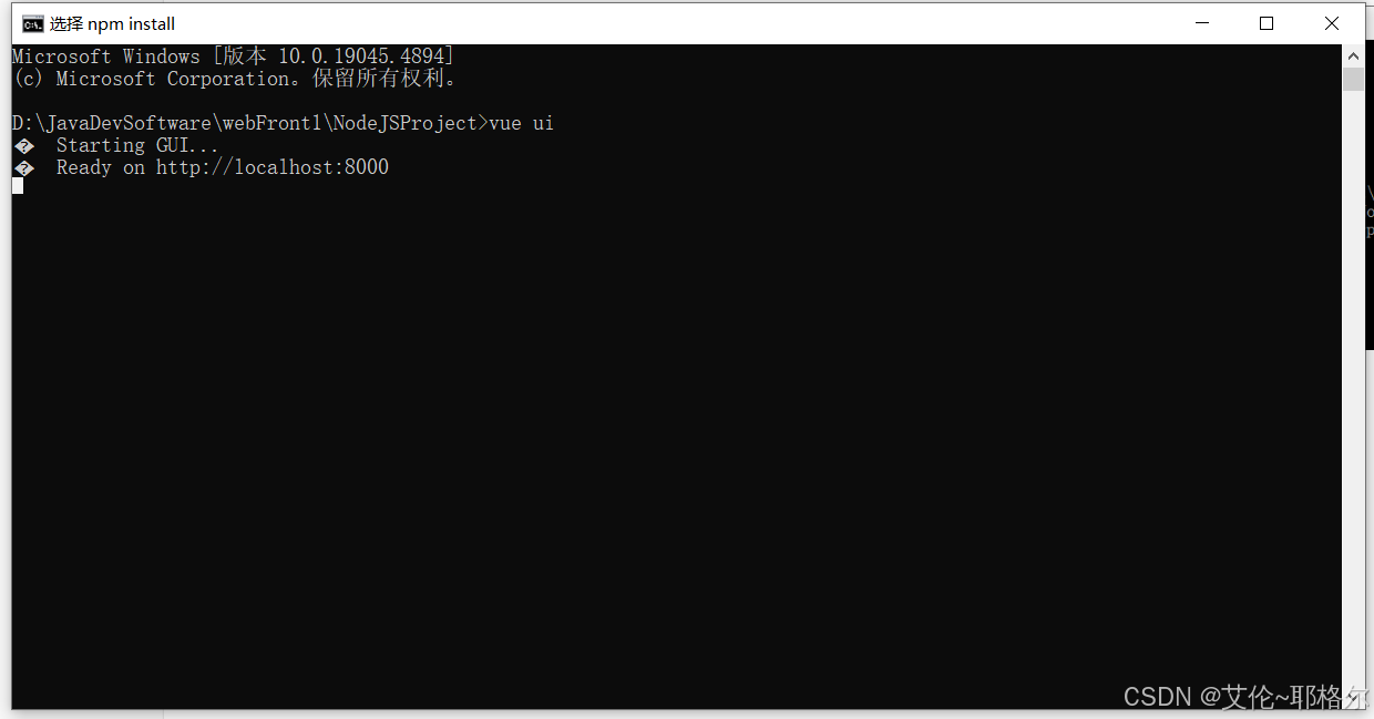3.进入cmd后,输入vue ui,回车,若弹出防火墙什么的,点击允许
