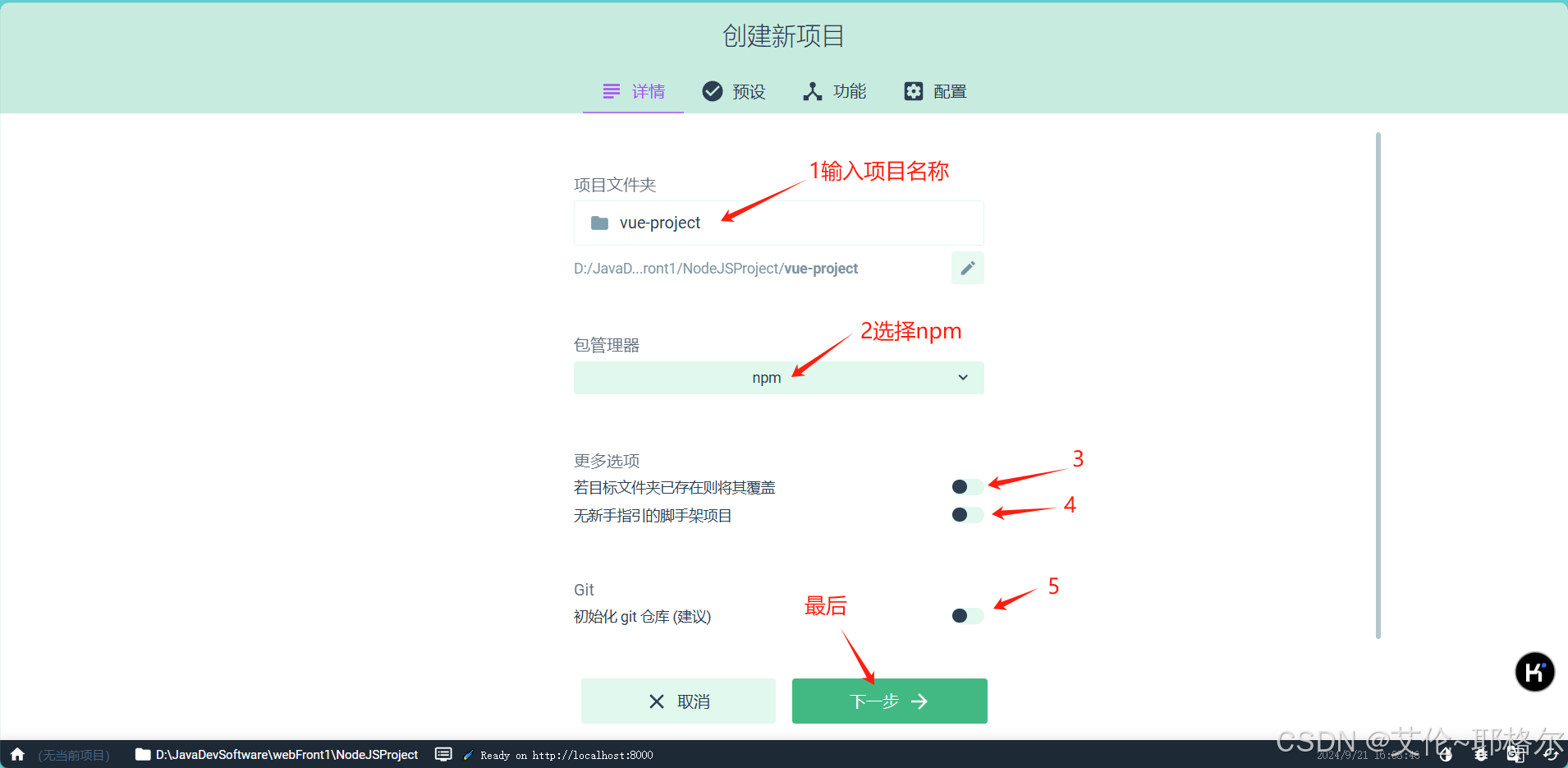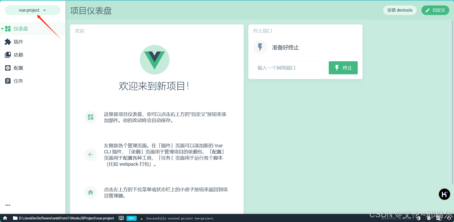 10.点击箭头处,然后等待一段时间,项目会创建完成