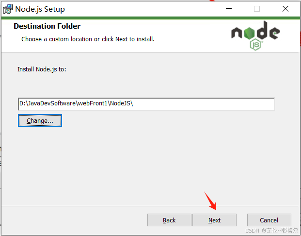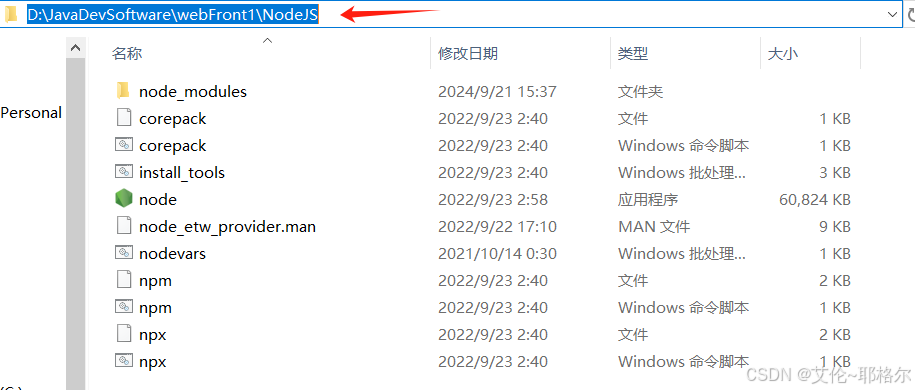 找到安装路径:D:\JavaDevSoftware\webFront1\NodeJS,进行复制