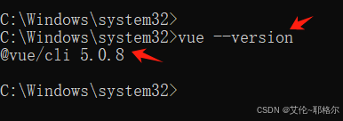 验证是否成功,输入:vue --version,回车,若看到vue脚手架的版本号,则脚手架安装成功