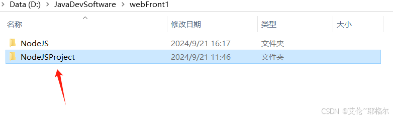 1.新建一个合适的文件夹,要确定好路径,确保以后所有的vue项目都放在这里,我这里创建了一个NodeJSProject文件夹,用于存放我的vue项目