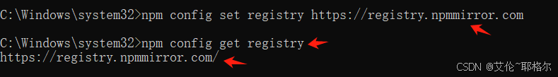 14.切换npm的淘宝镜像,这里提供的是最新淘宝镜像(还是在管理员cmd的窗口),输入