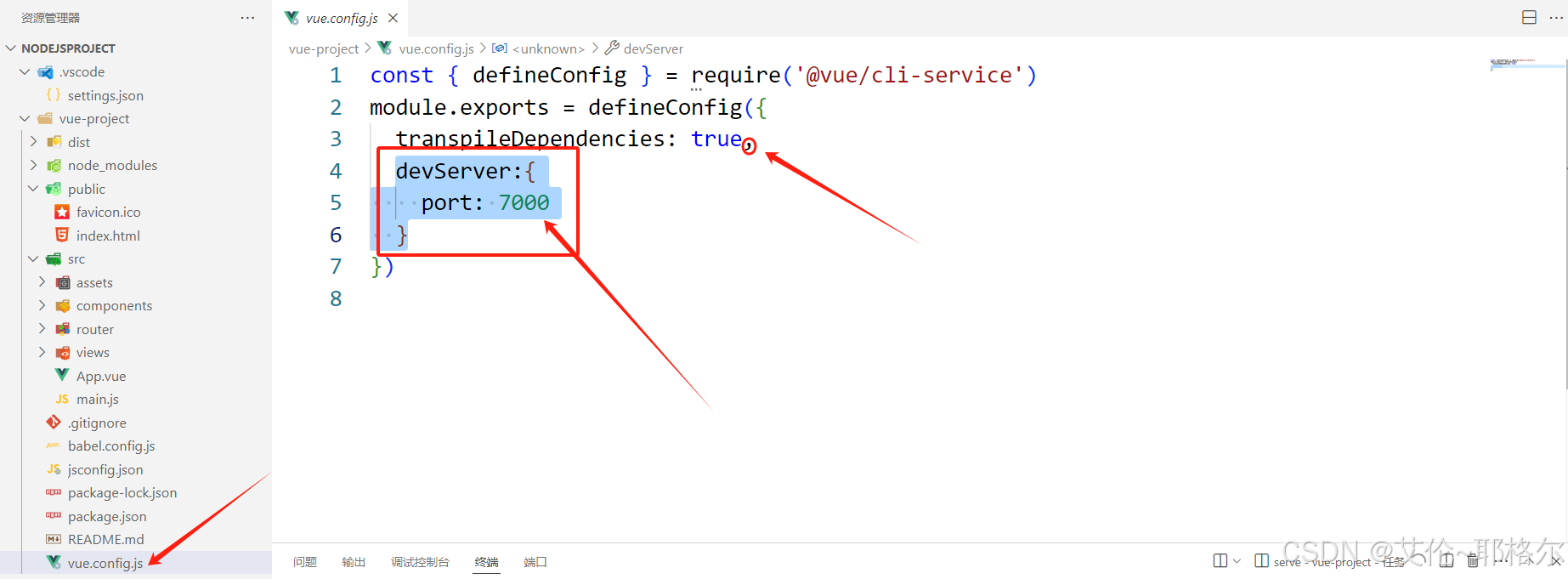 7.我这里是7000端口,大家应该是8080端口,为了区分与Tomcat,所以我改成了7000,修改方式如下,不要忘了逗号哦: