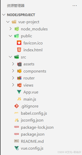 在一个刚新建的 Vue 项目中,通常会看到以下目录结构(以 Vue CLI 创建的项目为例):
