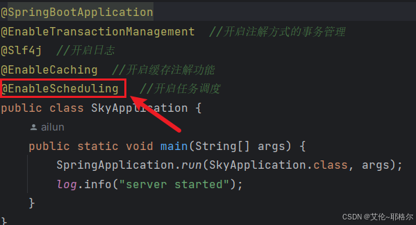 </dependency>在 Spring Boot 项目的配置类上添加 @EnableScheduling 注解: