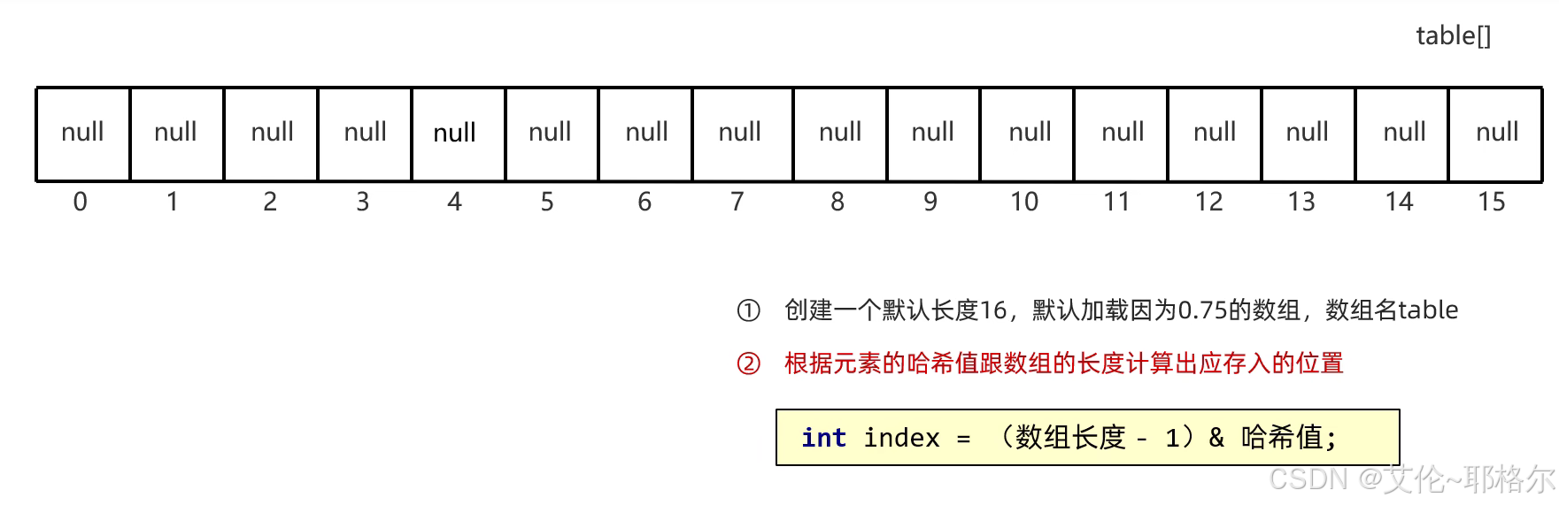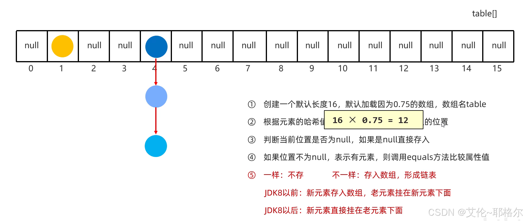 d.加载因子(扩容时机)我们一直没用到,其实就是当table数组存入了16 * 0.75 = 12个元素的时候,table数组会扩容至原来的二倍,也就是长度变为32。